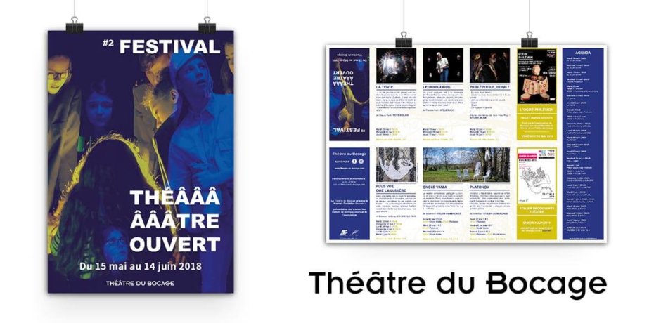 Création de l’affiche et plaquette du festival THÉÂÂÂTRE OUVERT à Bressuire, présentation des travaux des ateliers de pratique amateur du Théâtre du Bocage.